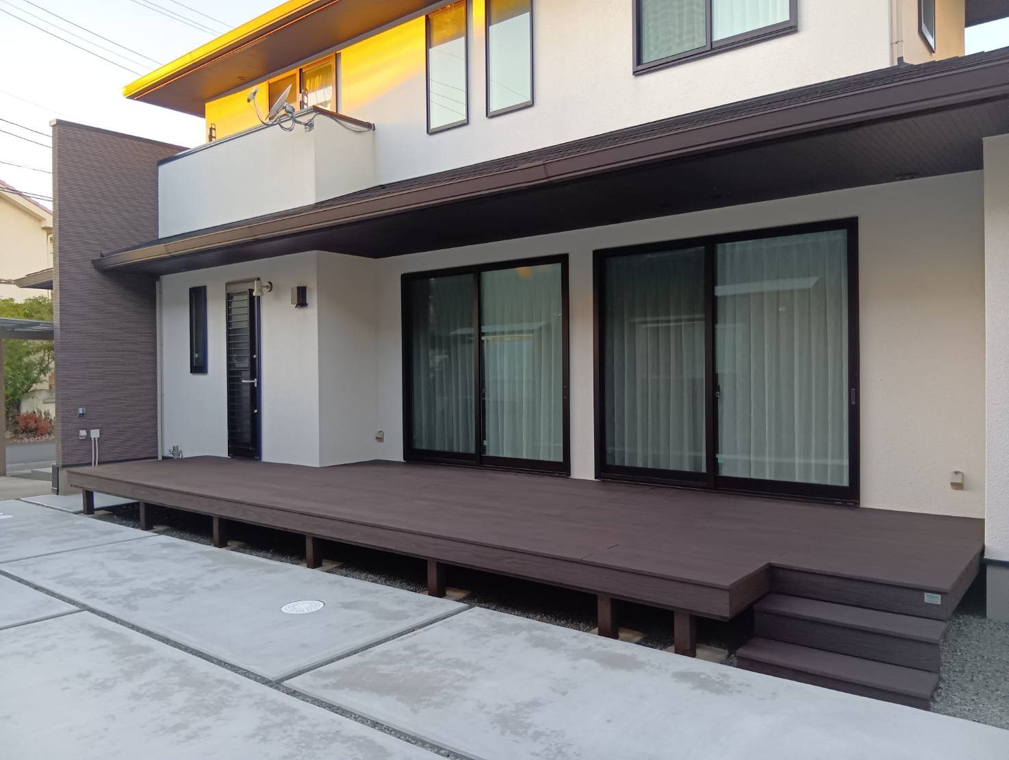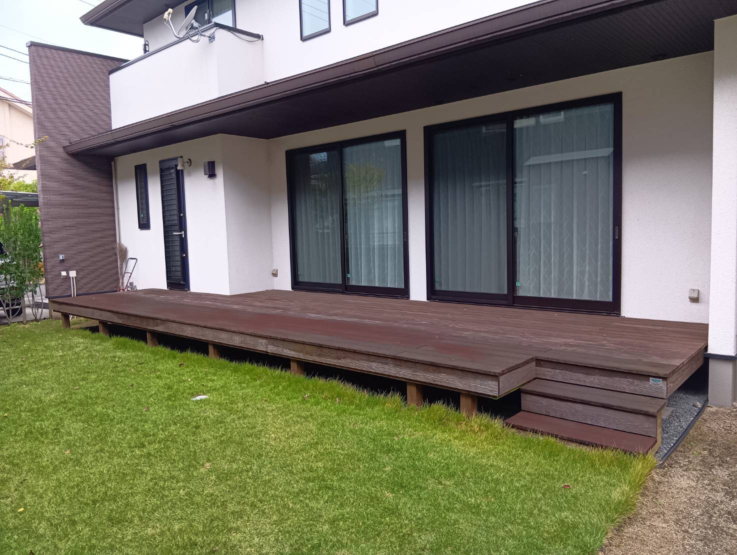 また、既存のウッドデッキは解体せず再塗装を行うことで色味が引き締まり、外観全体に統一感が生まれます。