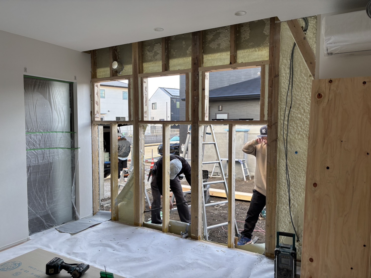 大きな掃き出し窓の取付工事を行いました。