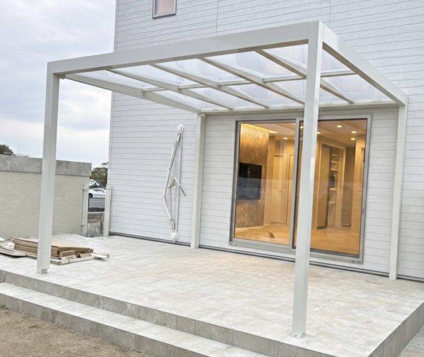 外構工事でテラスとお庭をつくられるので