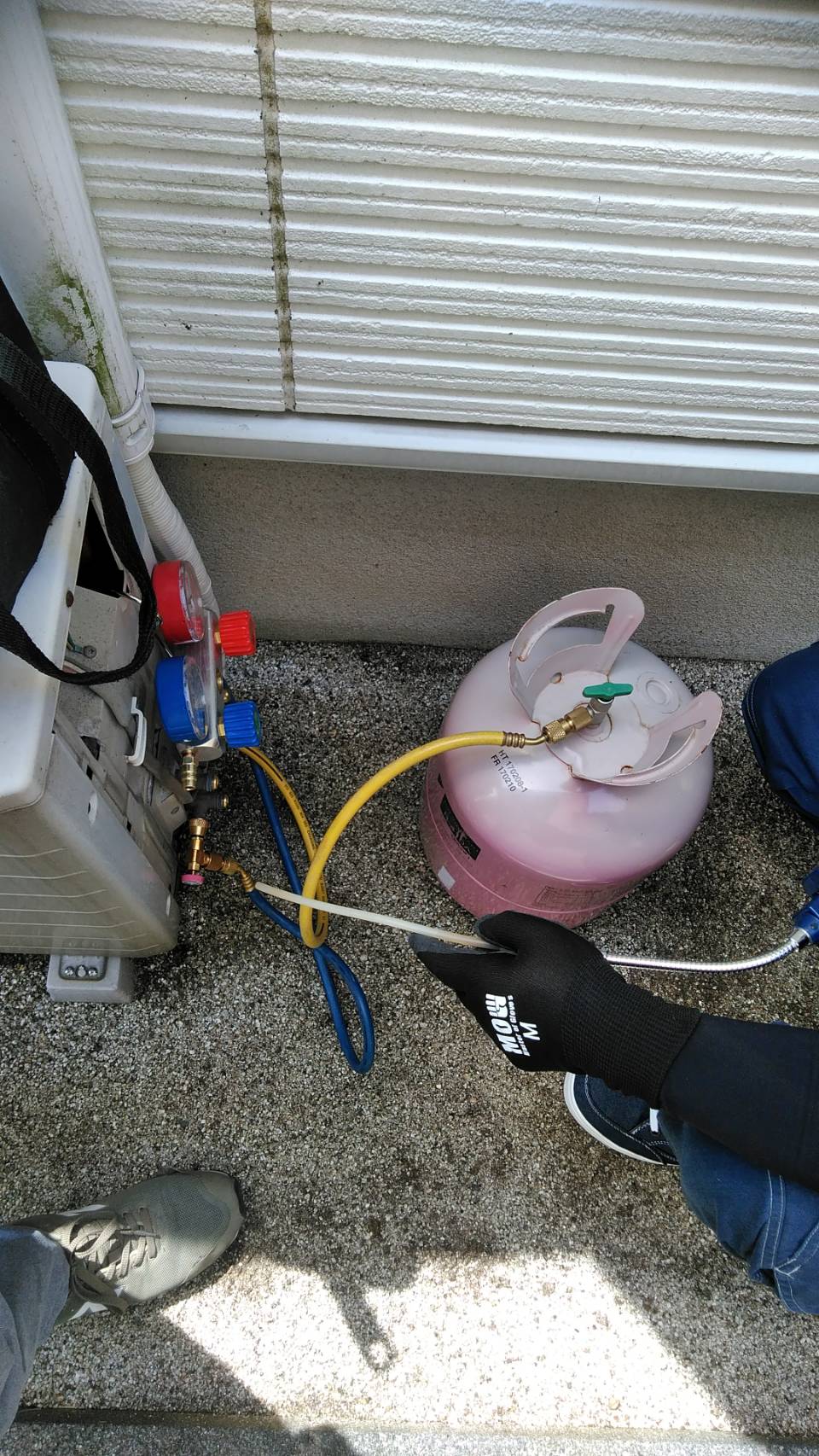 ガスを入れ直して、配管の修理を