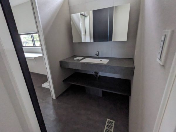 ↑パウダールームの設置状況 ミラー収納(間接照明付き)